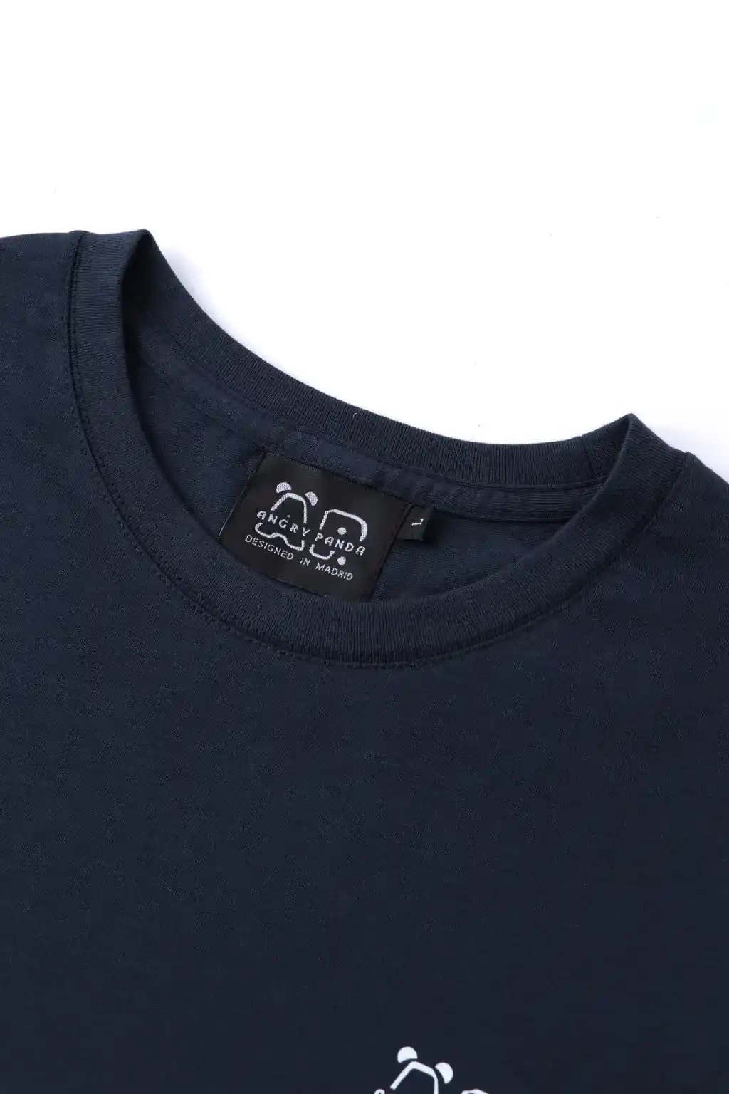 Esta camiseta azul marino es todo lo que una prenda básica debería ser… pero con intención. En el pecho, el logo de Angry Panda se posa sin alardes, como quien observa en silencio antes de actuar. Abajo, un discreto Designed in Madrid deja claro de dónde viene el carácter.